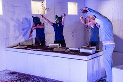 In manchen Nächten werden Erlöser geboren, in anderen setzen Diktatoren ganze Städte in Brand, manchmal geht man einfach in eine Bar, manchmal träumt man oder verliebt sich unsterblich, und manchmal leuchten einem die Sterne direkt ins Gesicht und es wird sichtbar. Was wird da sichtbar? Nichts. Die Stückentwicklung „KatzenNacht“ arbeitet sich durch das, worüber wir untertags so ungern sprechen, weil es ganz uns gehört.